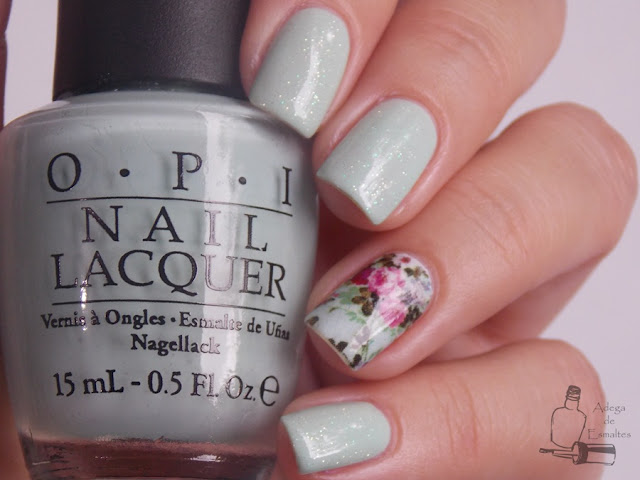 Escolhi o Gargantuan Green Grape da O.P.I., pois ele é exatamente o tom do fundo do adesivo. Este verdinho acinzentado, tom de água, sei lá que cor é essa rsrsrs... Mas acho fofa rsrs...