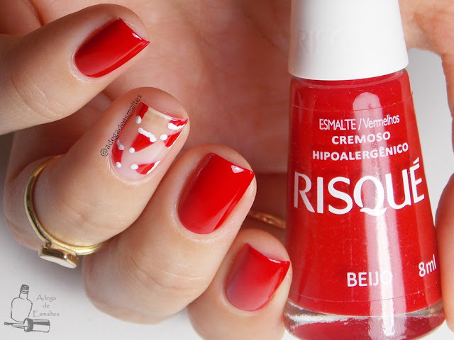 Ficou tão fofa essa nail art!! Uma graça! Amei demais. Ainda mais por ser um toque bem delicado com as demais unhas vermelhas!!