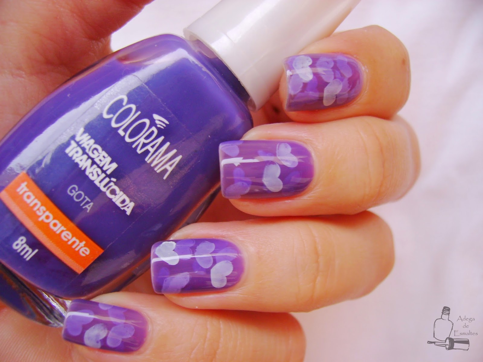 Desta vez vou mostrar uma combinação muito fofa com adesivos de corações e um esmalte lilás muito fofo!